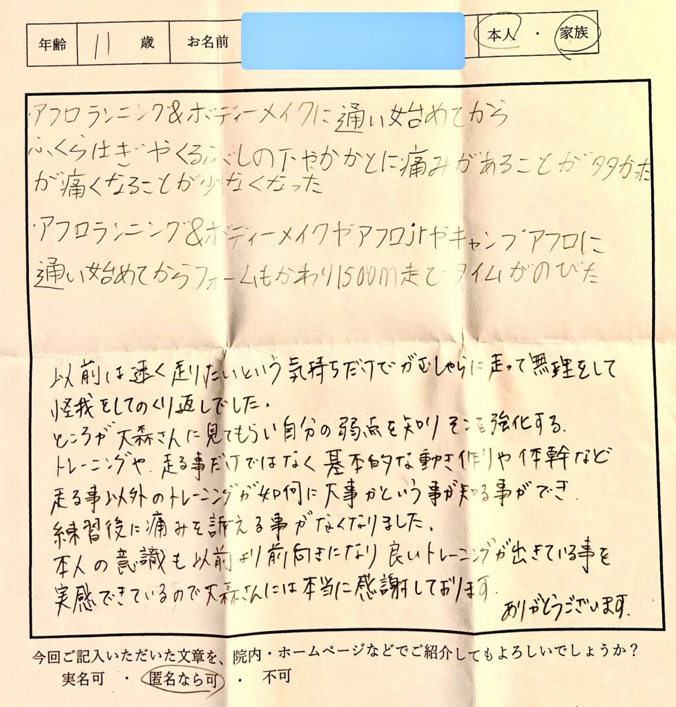 1500mのタイムが伸びた!一人一人にあった体幹トレーニングを教えてくれる!